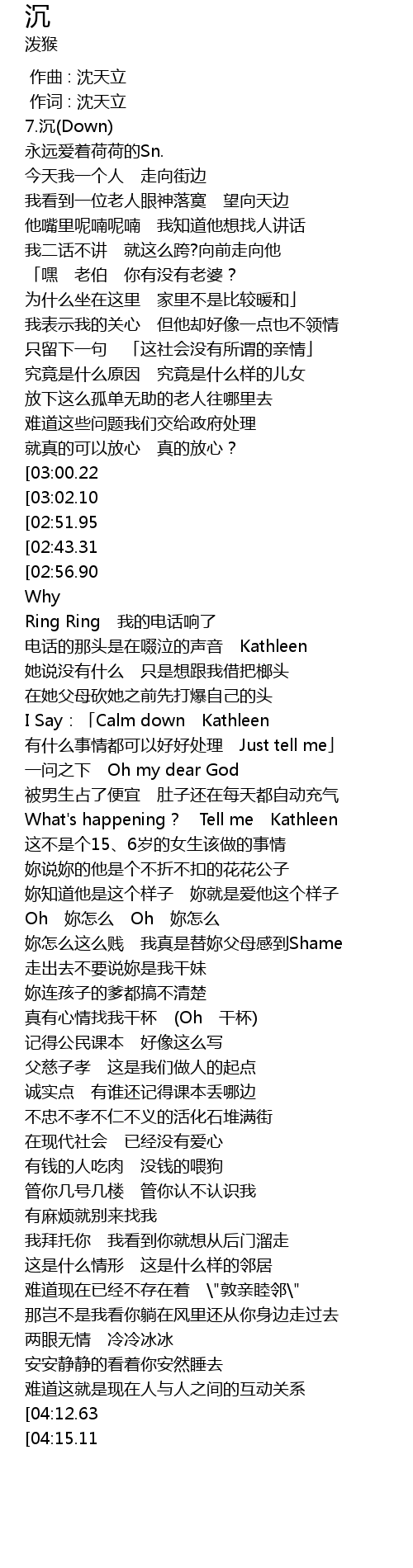 | [00:01.16] | 7.沉(Down) |