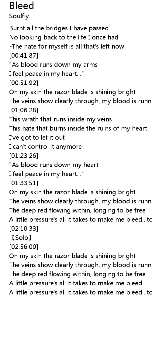 | [01:52.89] | A little pressure's all it takes to make me bleed...to death |
