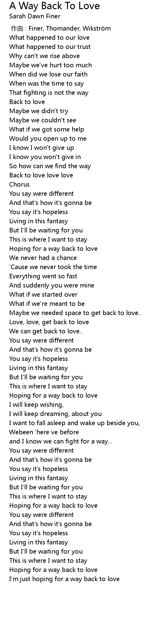 | [03:04.28] | Hoping for a way back to love |