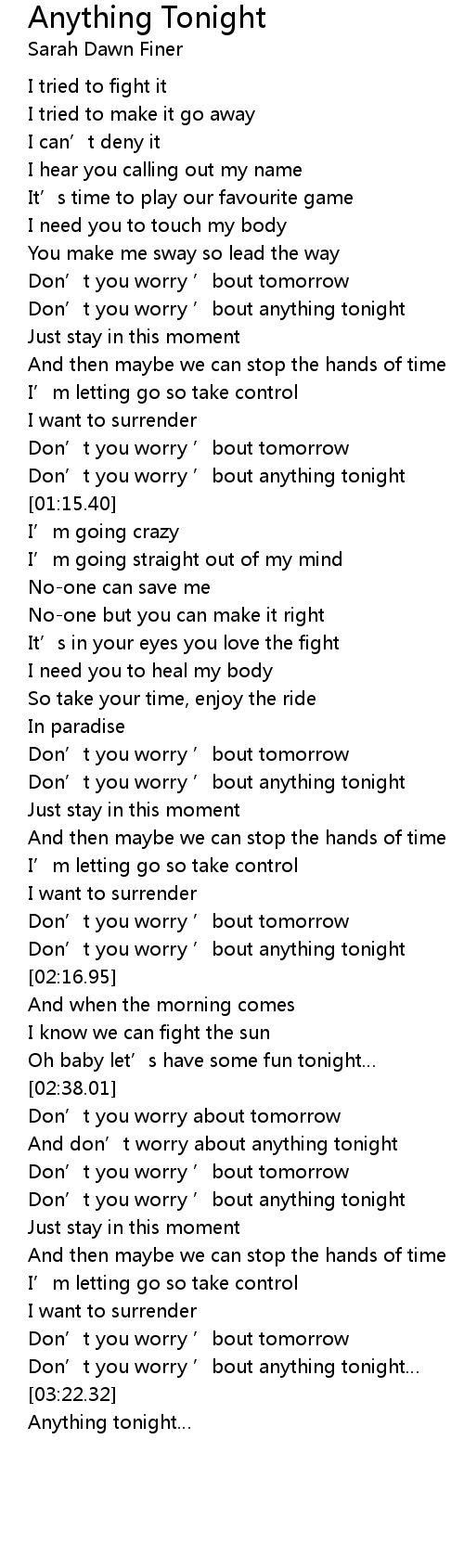 | [00:47.62] | Don' t you worry ' bout anything tonight |