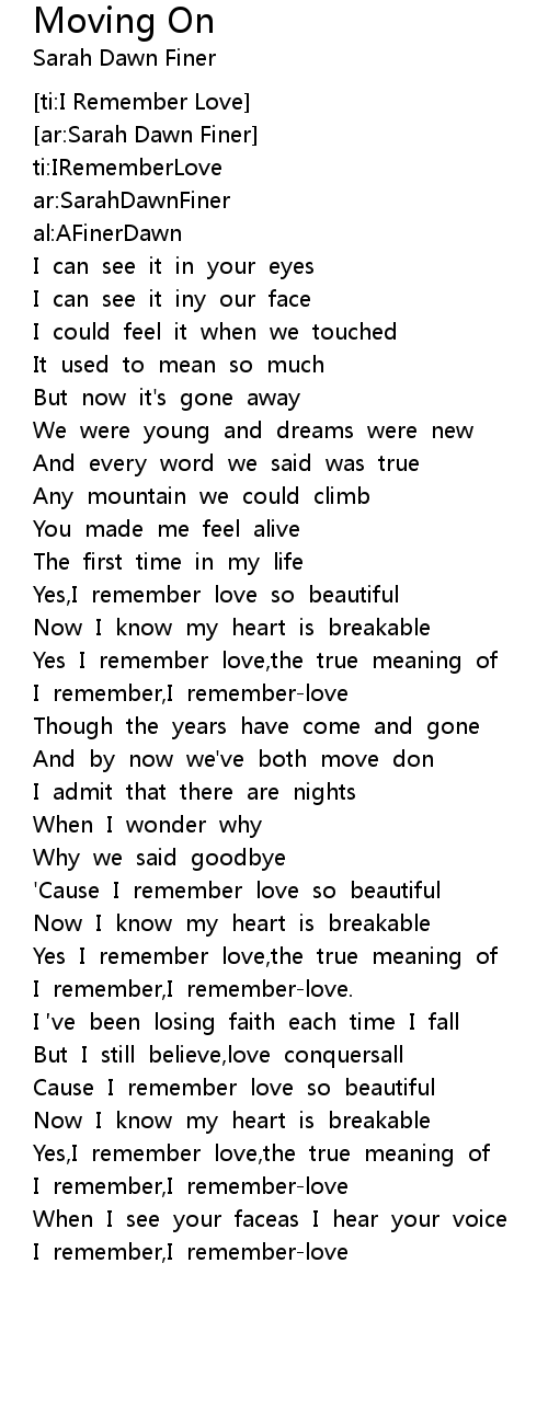 | [00:55.34] | Yes I remember love, the true meaning of |