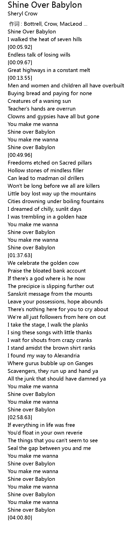 | [03:53.77] | Shine over Babylon |