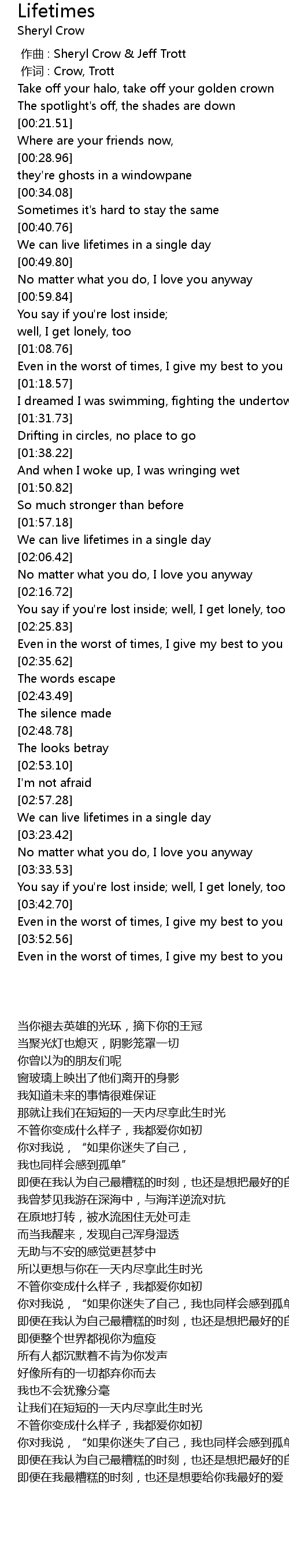 | [00:00.00] | zuò qǔ : Sheryl Crow Jeff Trott |