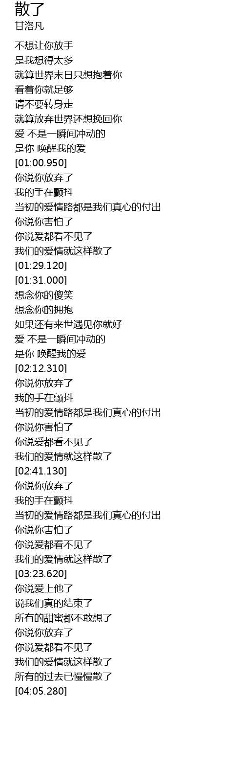 | [03:48.290] | wǒ men de ài qíng jiù zhè yàng sàn le |