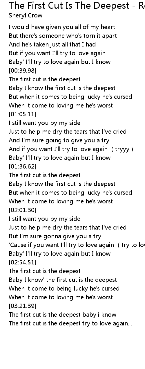 | [01:43.63] | Baby I know the first cut is the deepest |
