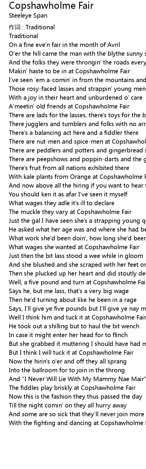 | 歌曲 | Copshawholme Fair |
