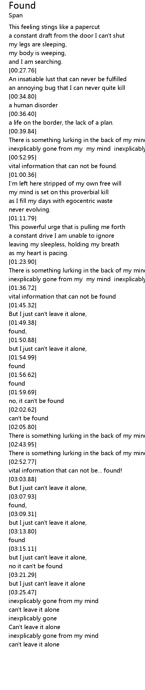 Found 歌词