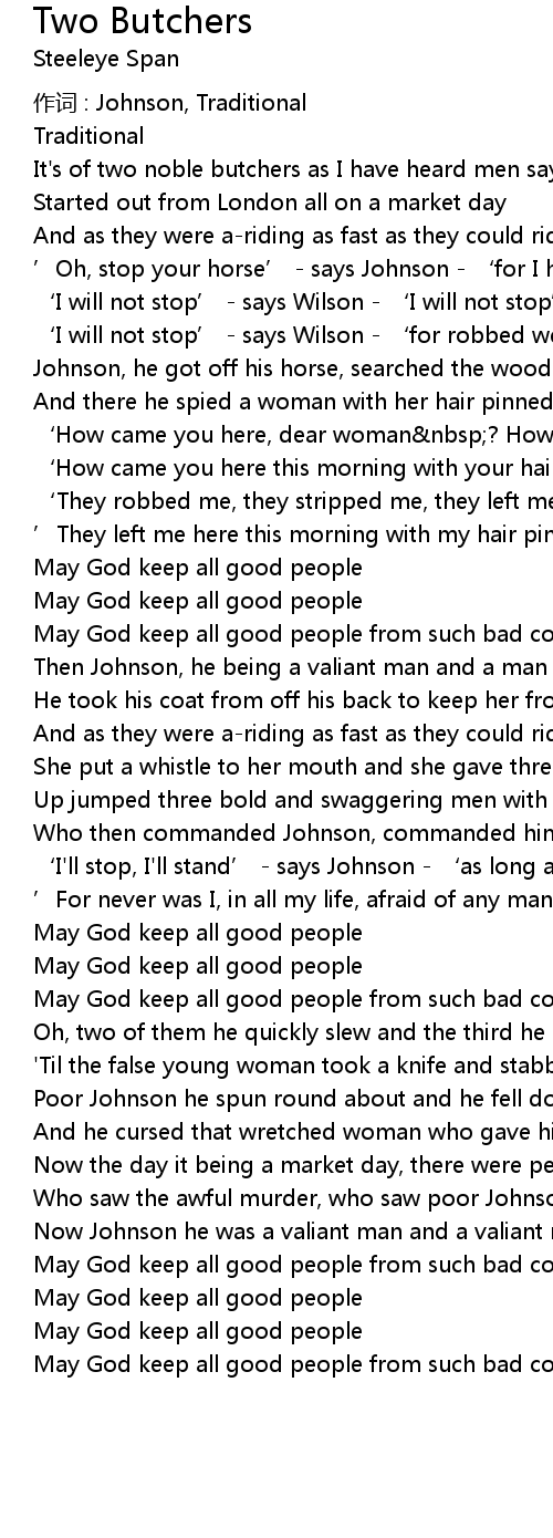 | It's of two noble butchers as I have heard men say | |