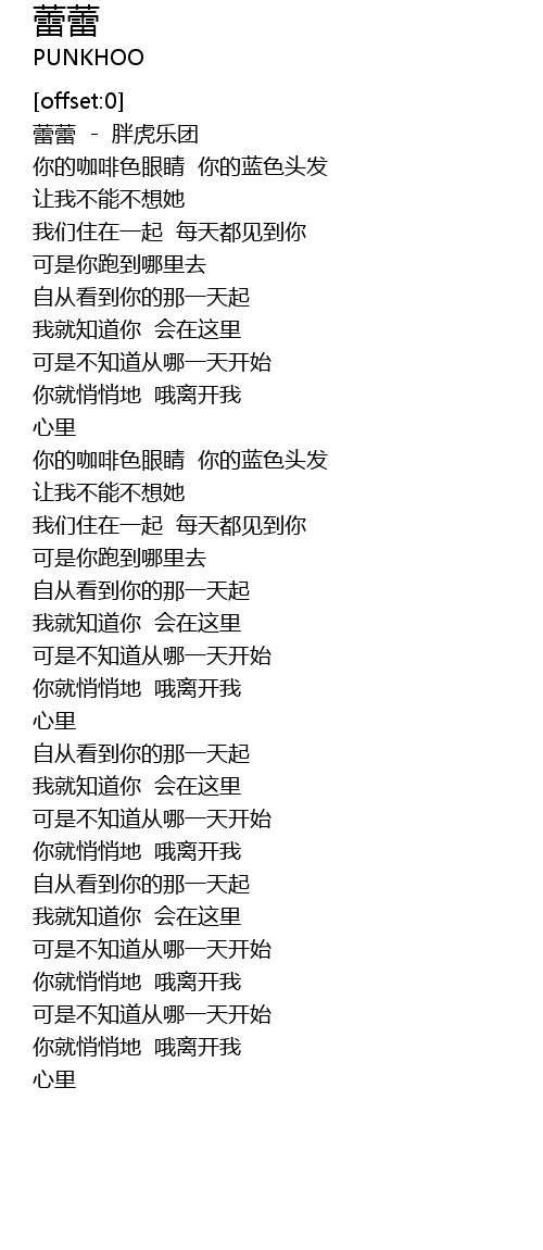 | [00:00.68] | 蕾蕾 - 胖虎乐团 |