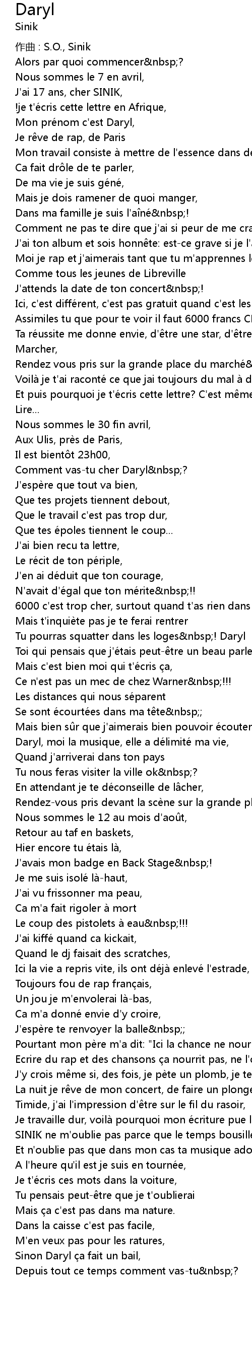 | Daryl, moi la musique, elle a de limite ma vie, | |