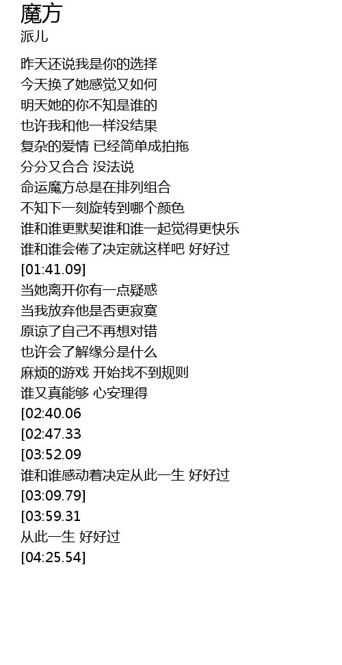 | [03:37.75][02:40.06] | 命运魔方总是在排列组合 |