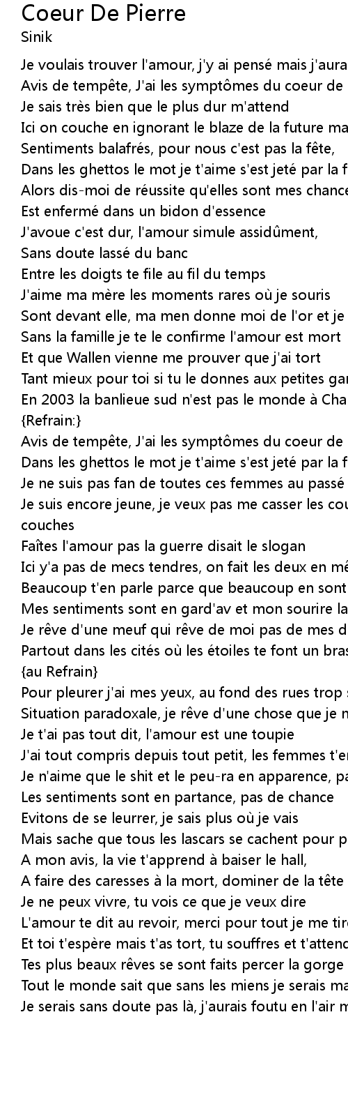 | Dans les ghettos le mot je t' aime s' est jete par la fen tre | |
