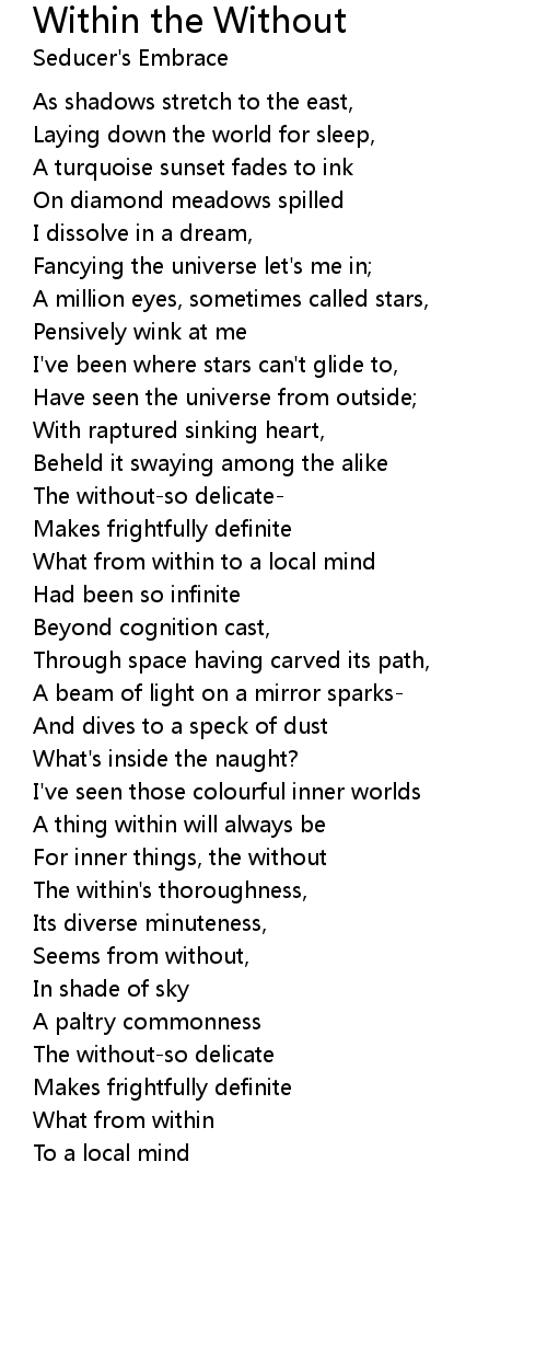 Seems from without, |