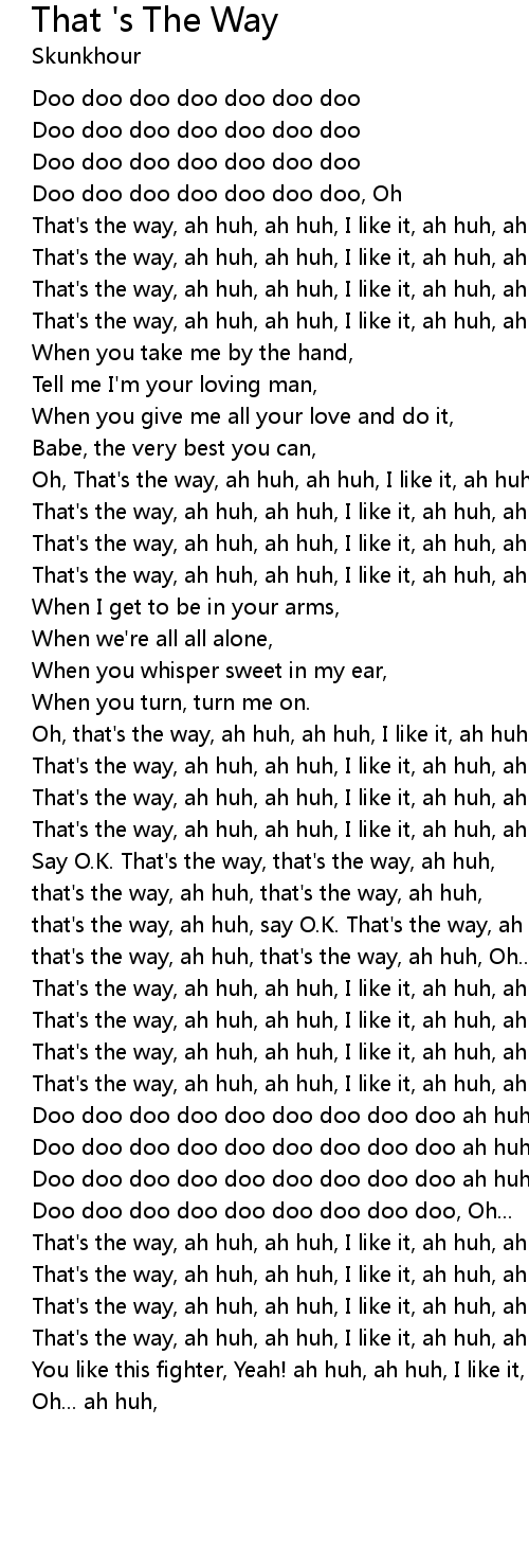 Oh, That's the way, ah huh, ah huh, I like it, ah huh, ah huh, |