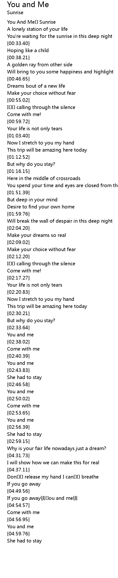 | [02:36.39] | You and me |