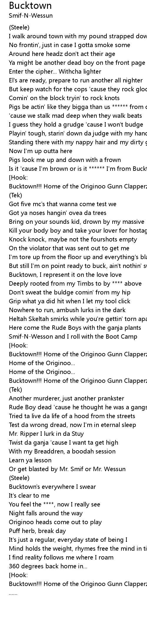 Bucktown!!! Home of the Originoo Gunn Clapperz! |