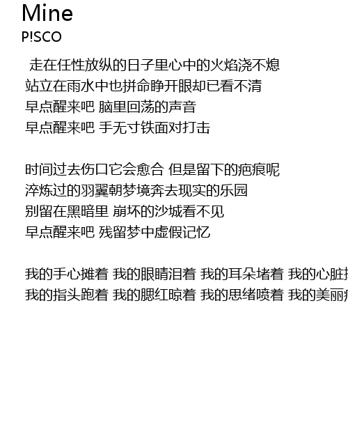 | wǒ de zhǐ tou pǎo zhe wǒ de sāi hóng liàng zhe wǒ de sī xù pēn zhe wǒ de měi lì tòng zhe |