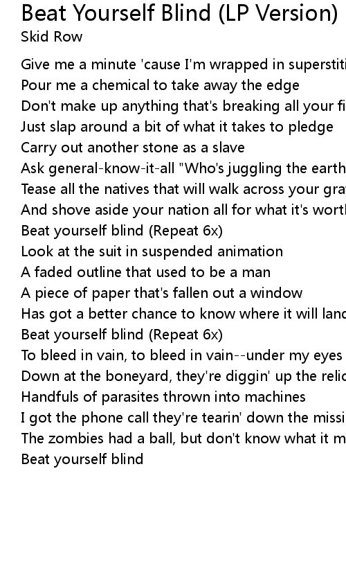 Beat yourself blind (Repeat 6x) |