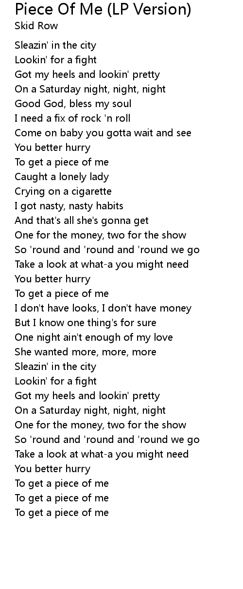 | [00:40.22] | To get a piece of me |