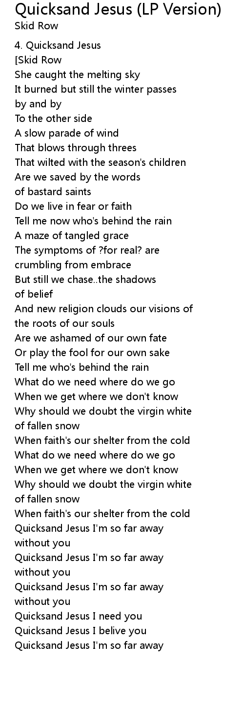 | [04:19.83] | Quicksand Jesus I'm so far away |