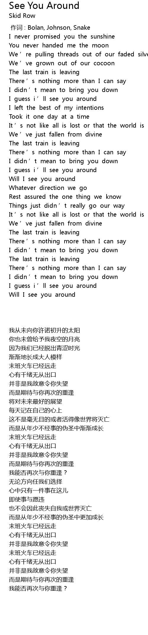 | [00:00.00] | 作词 : Bolan, Johnson, Snake |