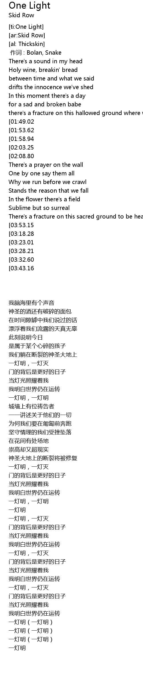 | [03:38.00][03:43.16][03:48.17] | one light burns one light burns |