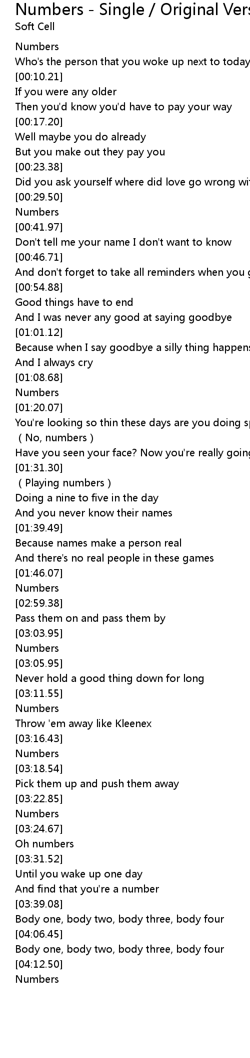 | [03:04.82] | Numbers |