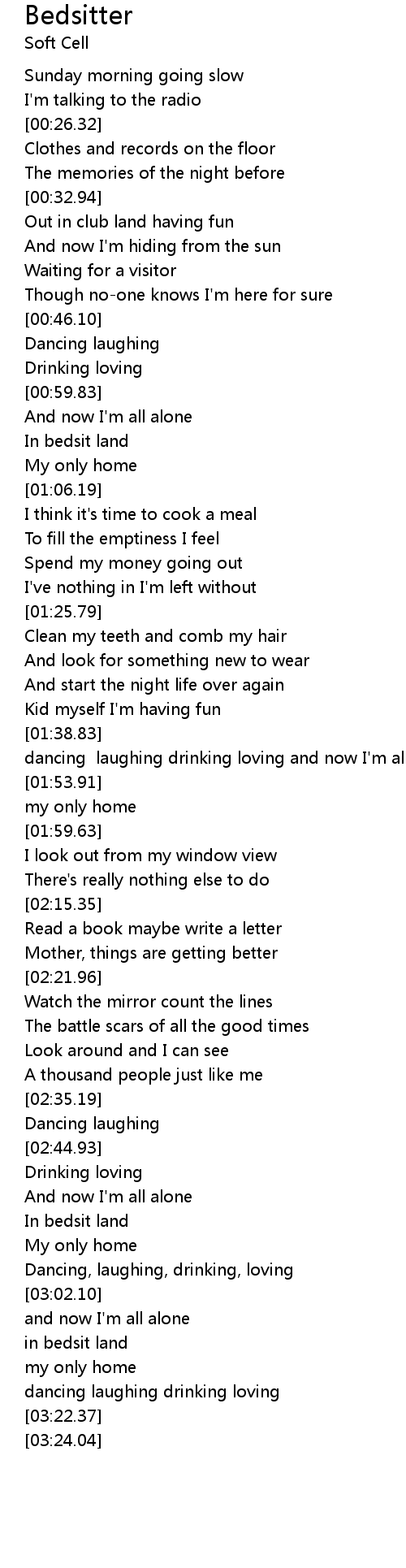 dancing laughing drinking loving and now I'm all alone inbedsit land |