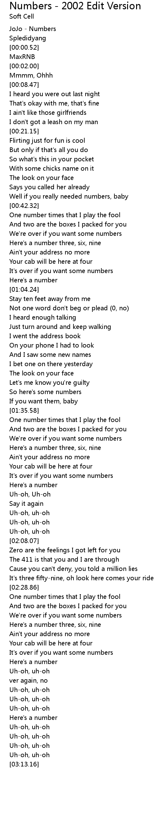 歌曲 Numbers - 2002 Edit Version