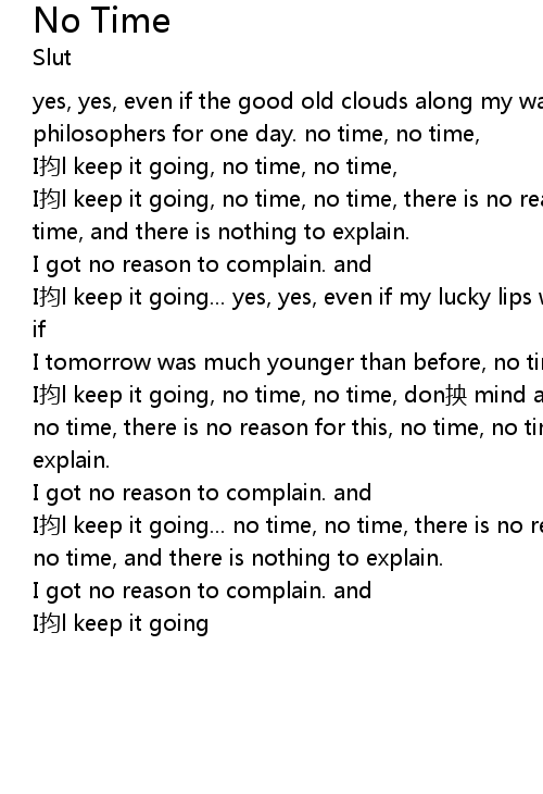 | I yun l keep it going, no time, no time, don yang mind and the choir goes, no time, no time, there is no reason for this, no time, no time, and there is nothing to explain. | |