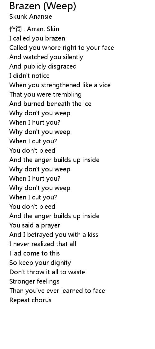 | 歌曲 | Brazen (Weep) |