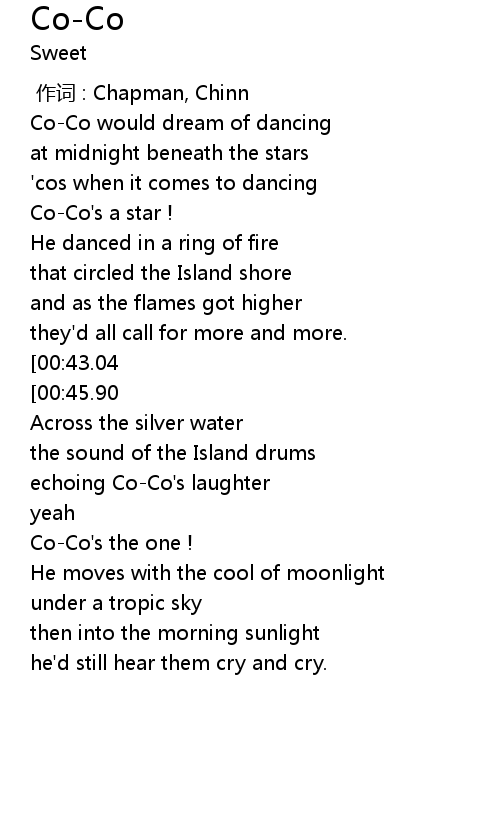 | [00:09.45] | Co-Co would dream of dancing |
