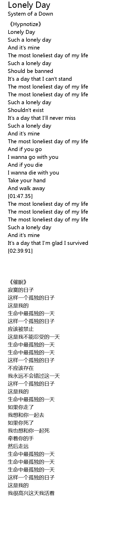 | [02:26.59] | Such a lonely day |