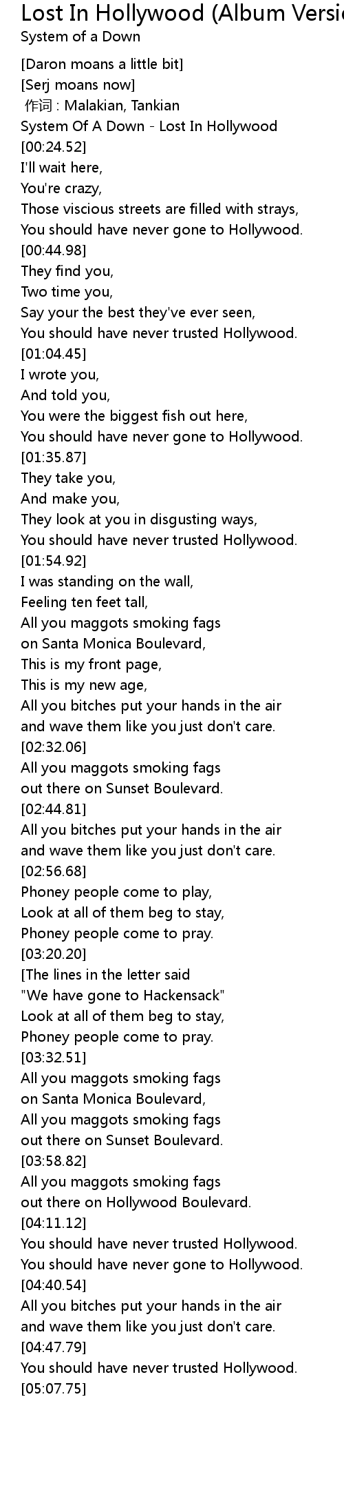 | [00:00.00] | System Of A Down - Lost In Hollywood |
