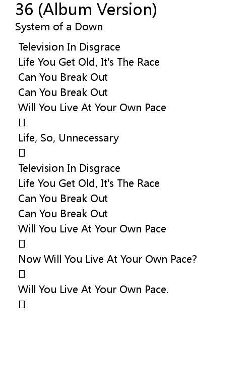 | [00:38.67] | Now Will You Live At Your Own Pace? |