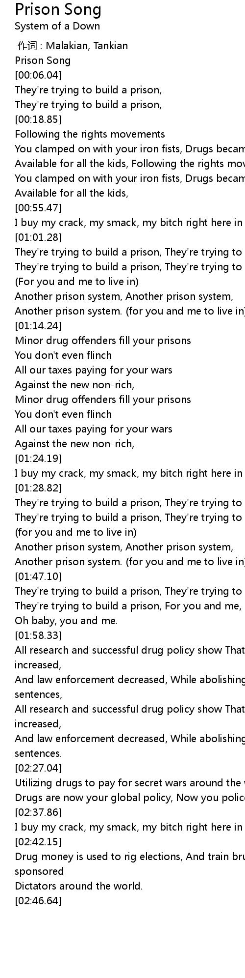 | [01:04.10] | They're trying to build a prison, They're trying to build a prison, |