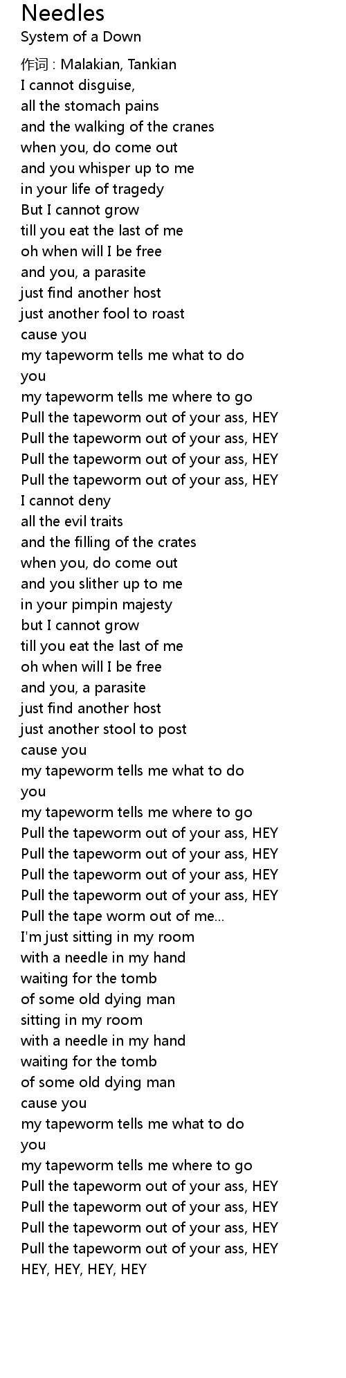 | 作词 : Malakian, Tankian | |