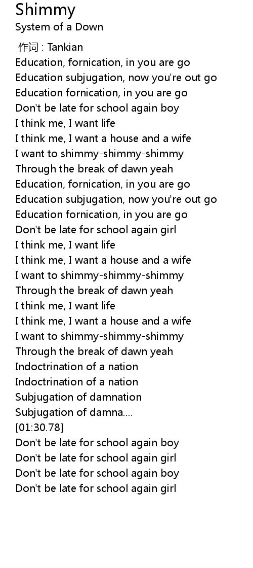 | [01:09.52] | I want to shimmy-shimmy-shimmy |