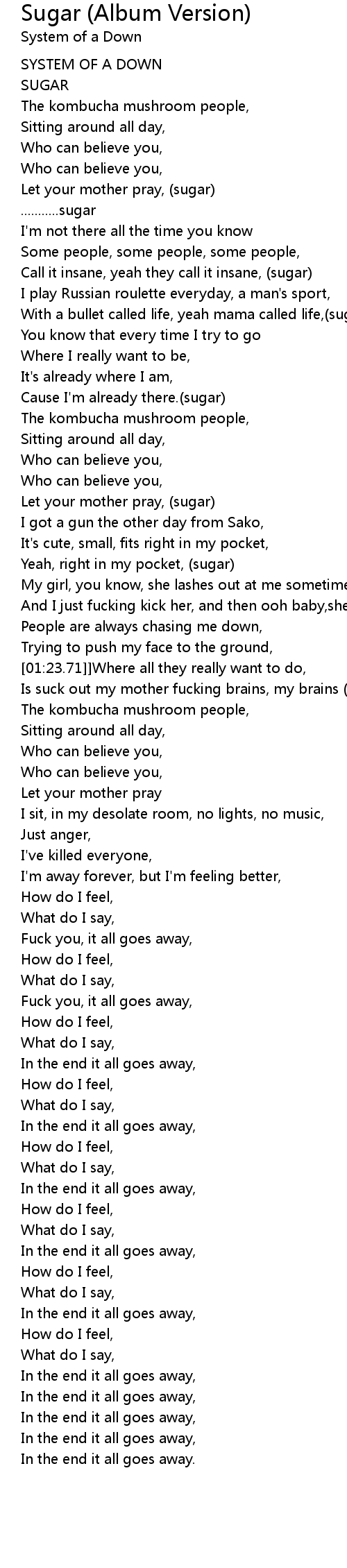 And I just fucking kick her, and then ooh baby,she's O.K.(sugar) |