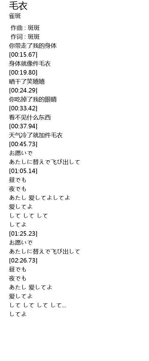 | [00:39.70] | 天气冷了就加件毛衣 |