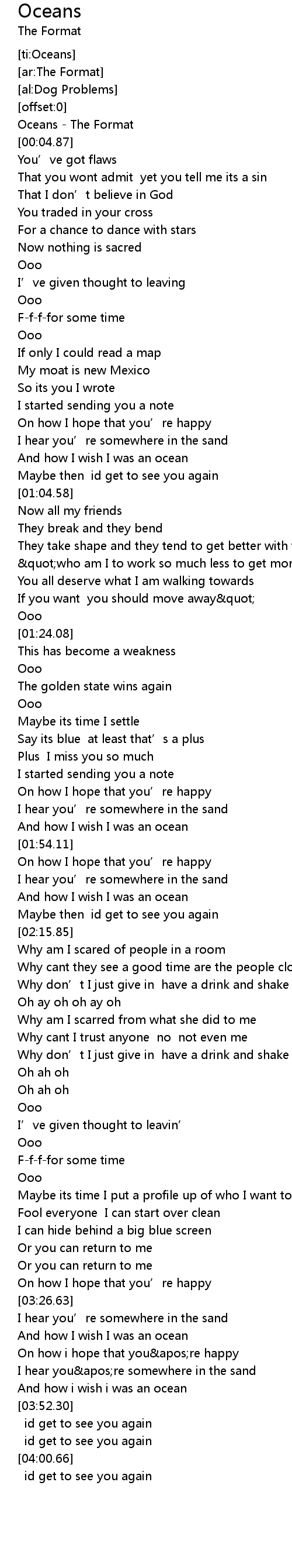 | [02:02.47] | I hear you' re somewhere in the sand |