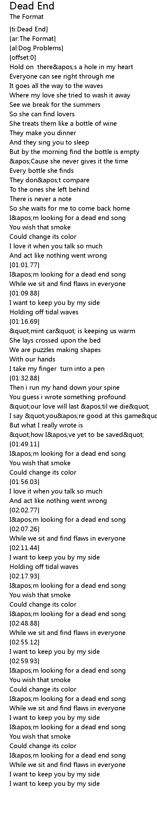 [02:04.71] I'm looking for a dead end song