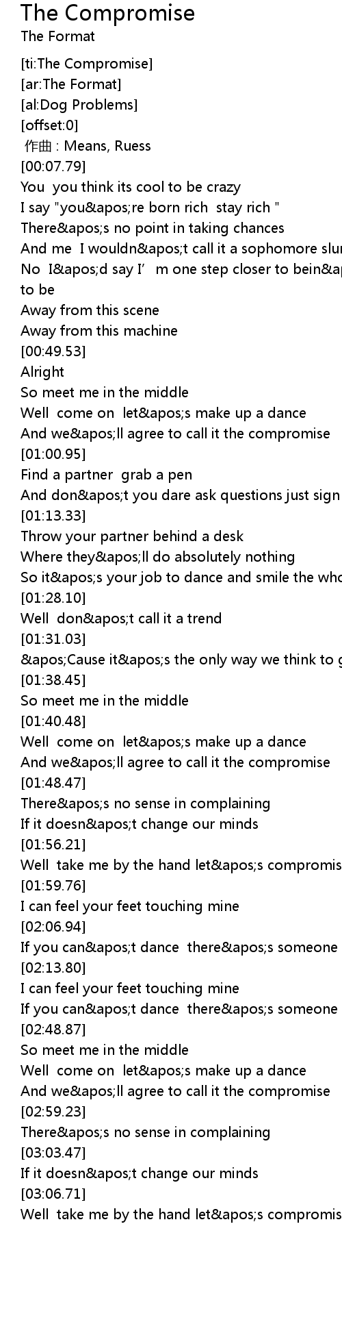 | [01:44.97] | And we apos ll agree to call it the compromise |