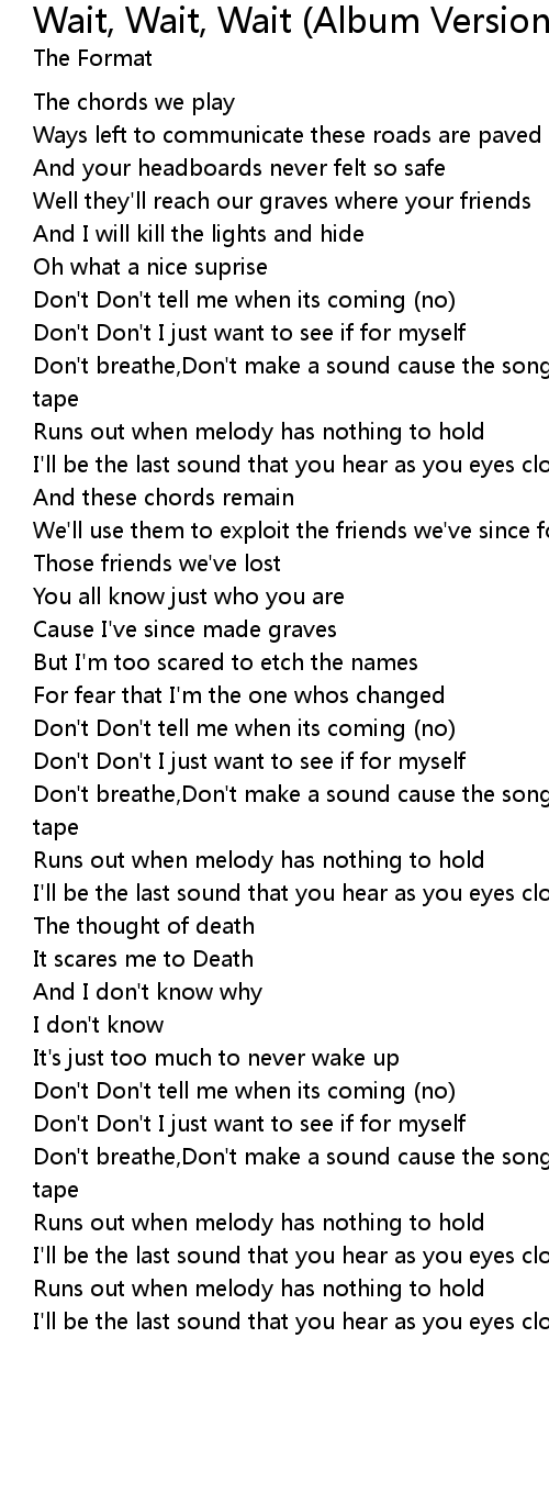 [01:33.742] Don't breathe,Don't make a sound cause the song won't stop till the tape