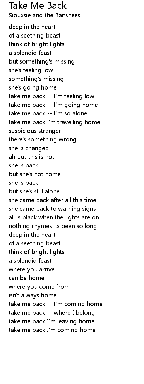 take me back I'm coming home |