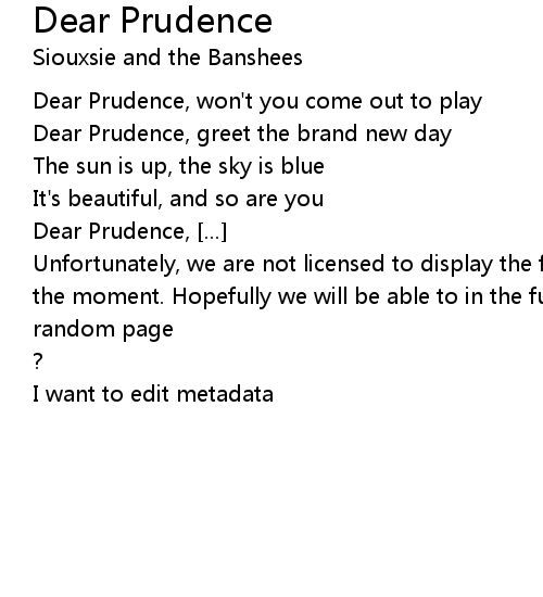 | Dear Prudence, won't you come out to play | |