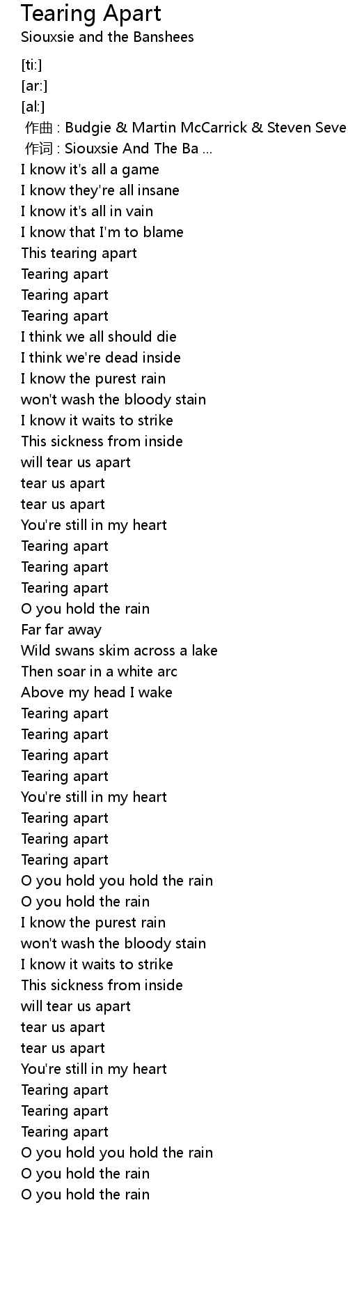| [00:01.00] | zuo ci : Siouxsie And The Ba ... |