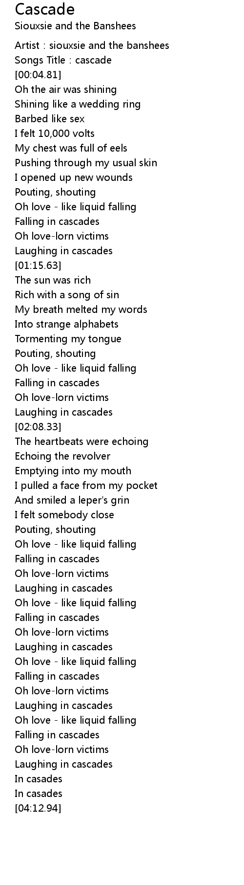 | [00:00.97] | Artist: siouxsie and the banshees |