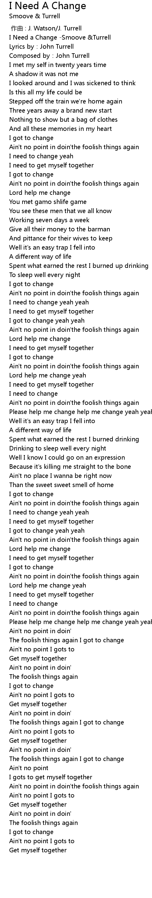 | [00:00.117] | I Need a Change Smoove Turrell |