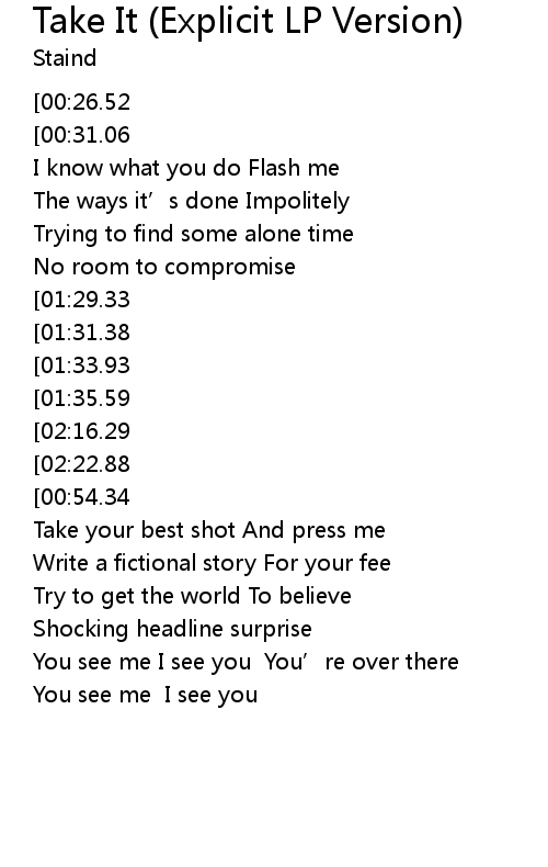 | 歌曲 | Take It (Explicit LP Version) |